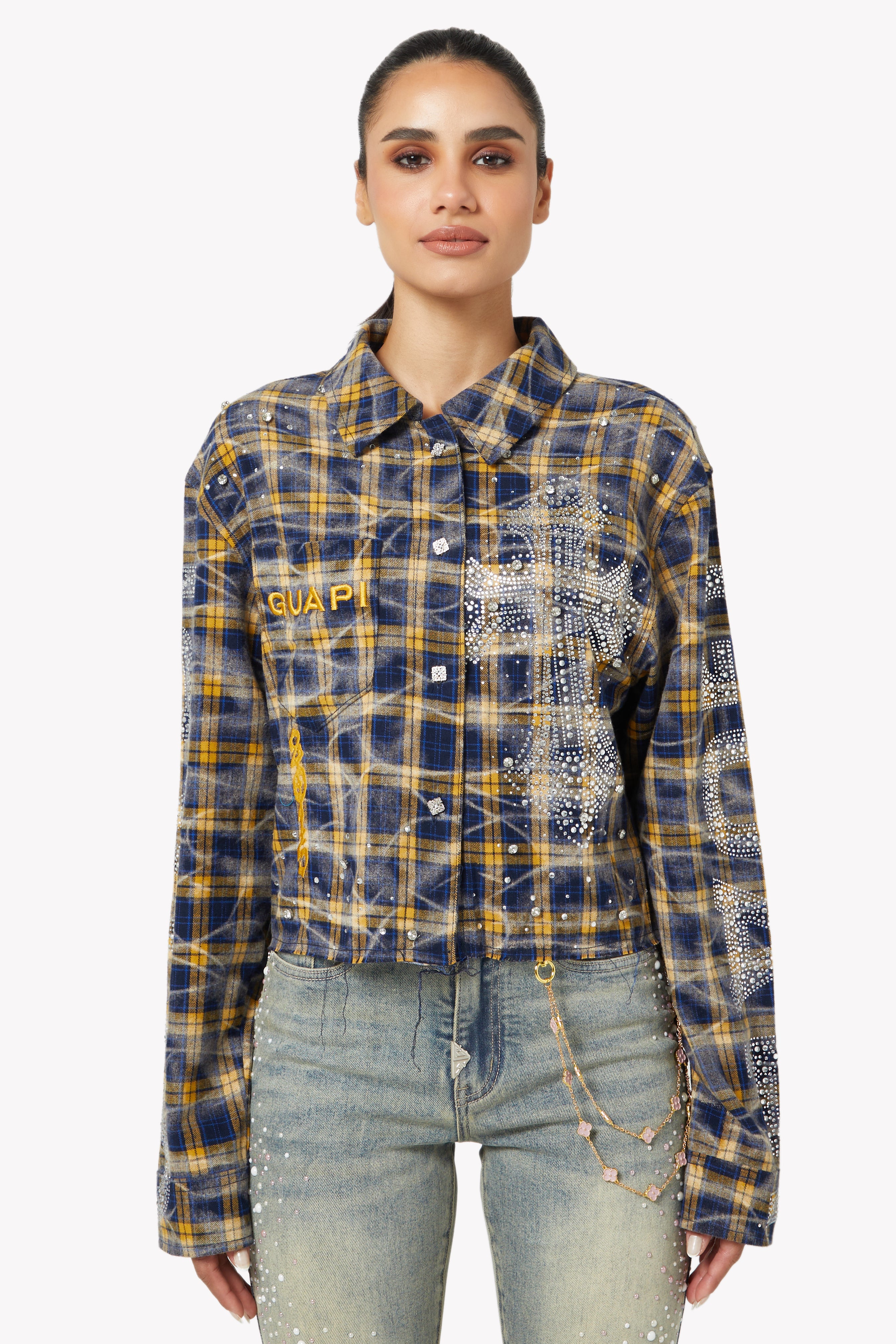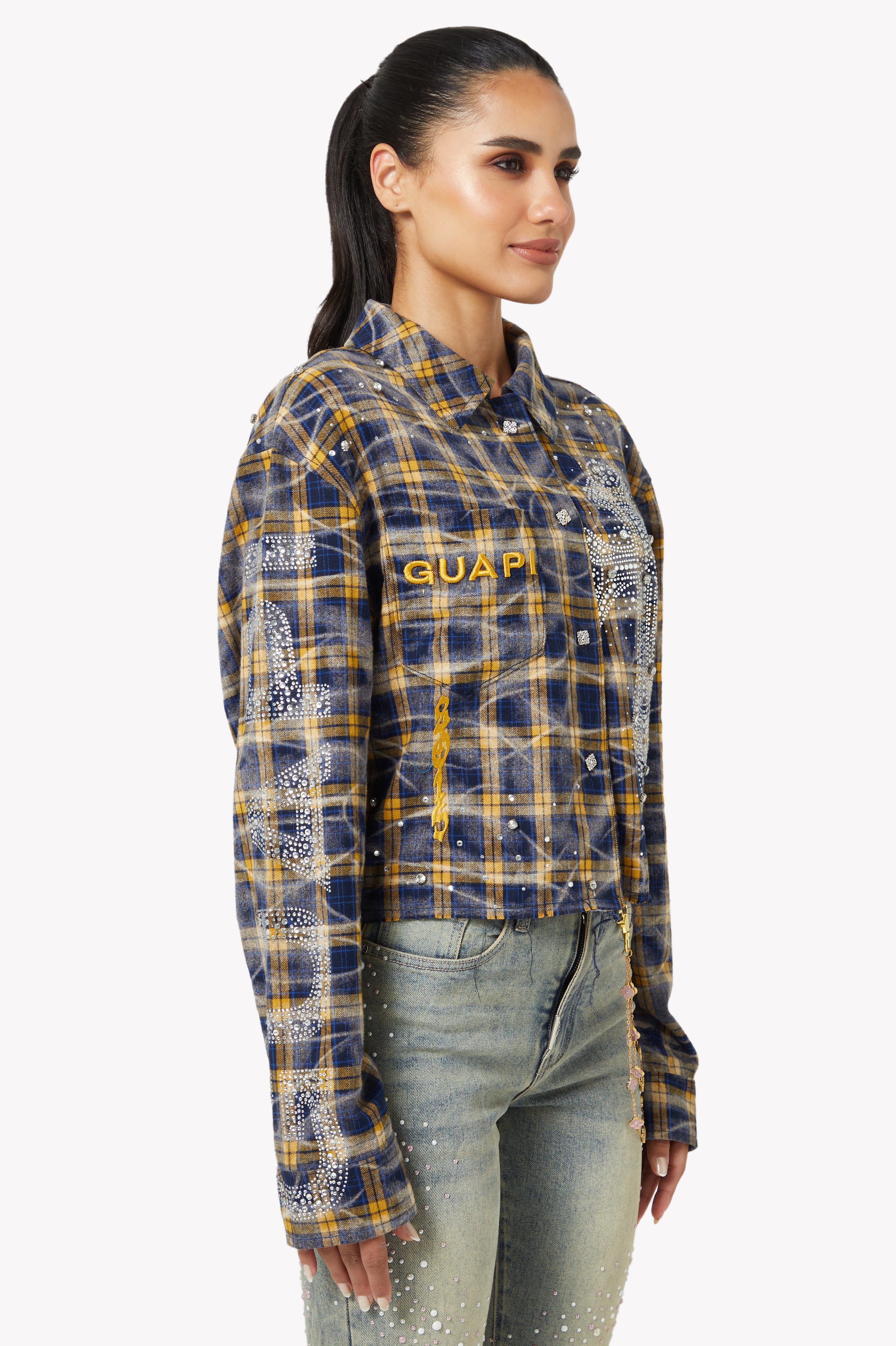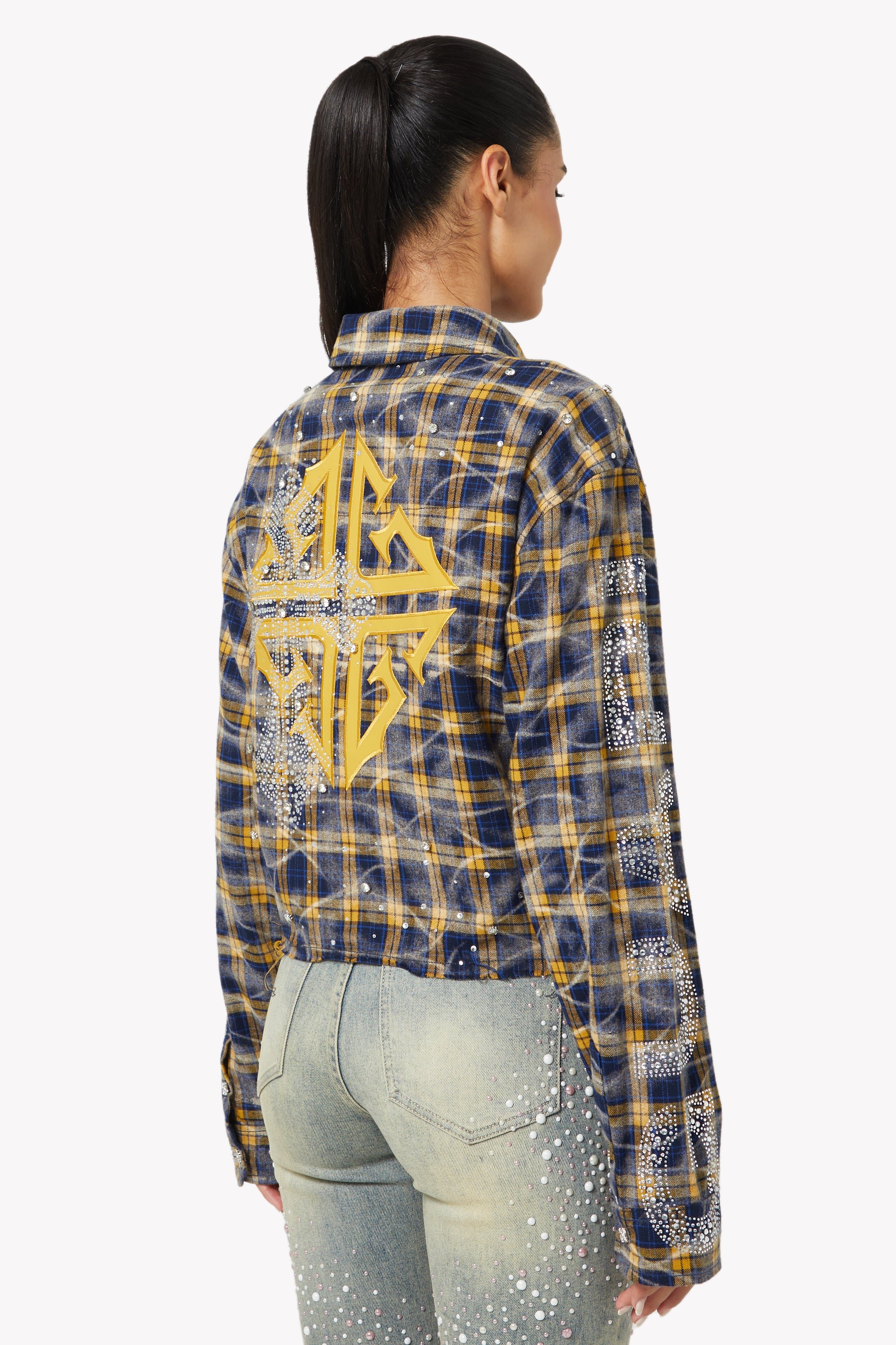 ネイビーゴールドクロップドフランネル