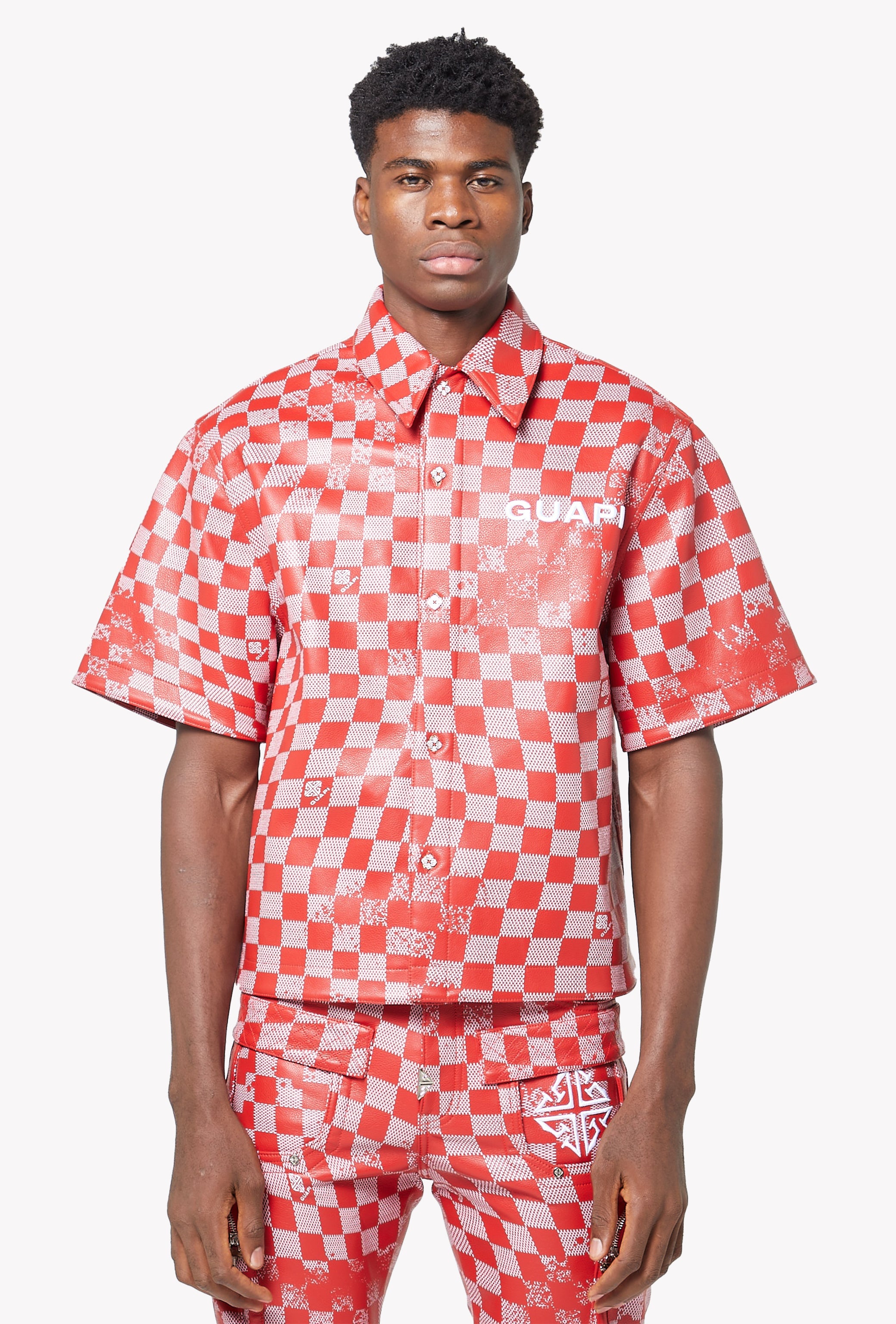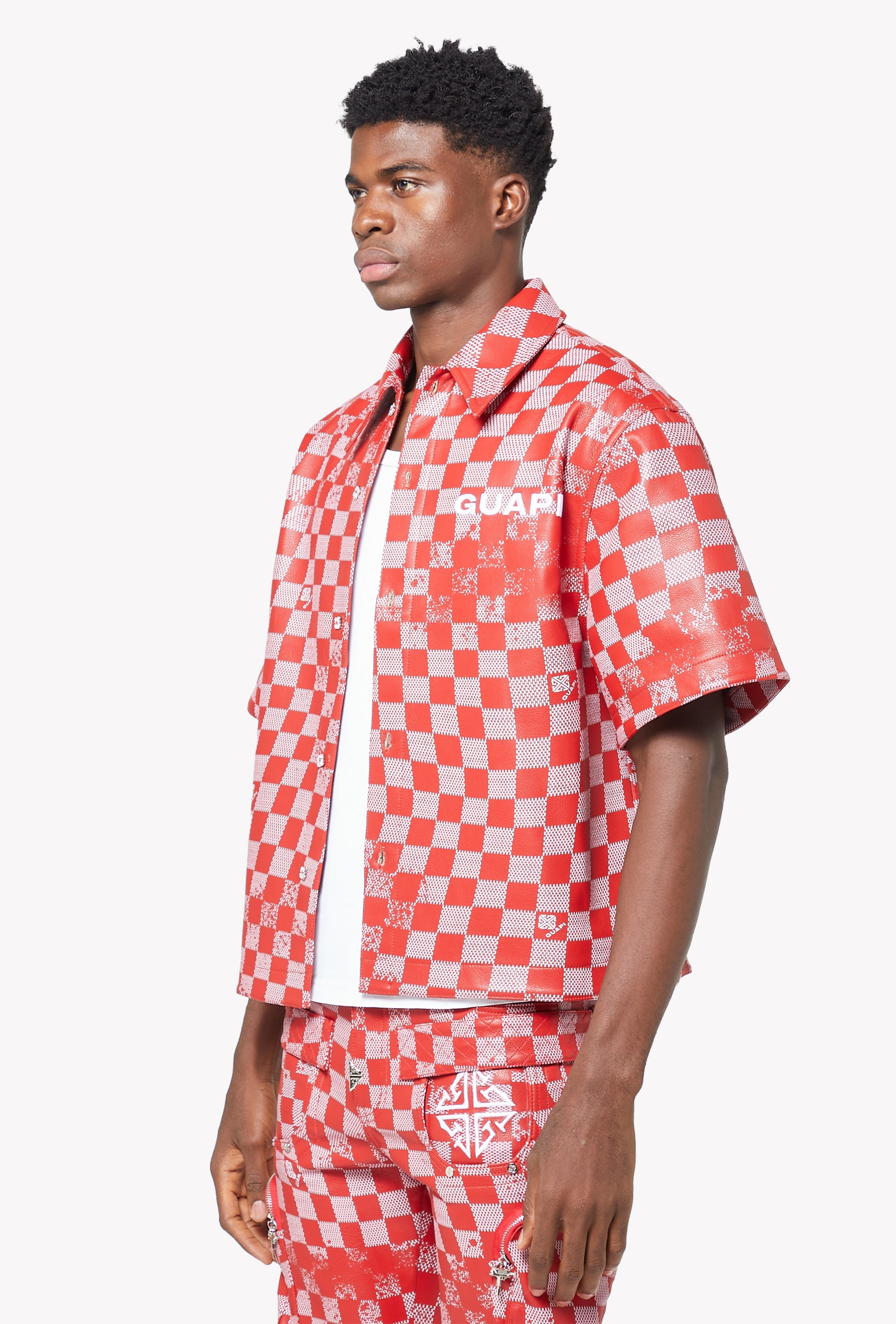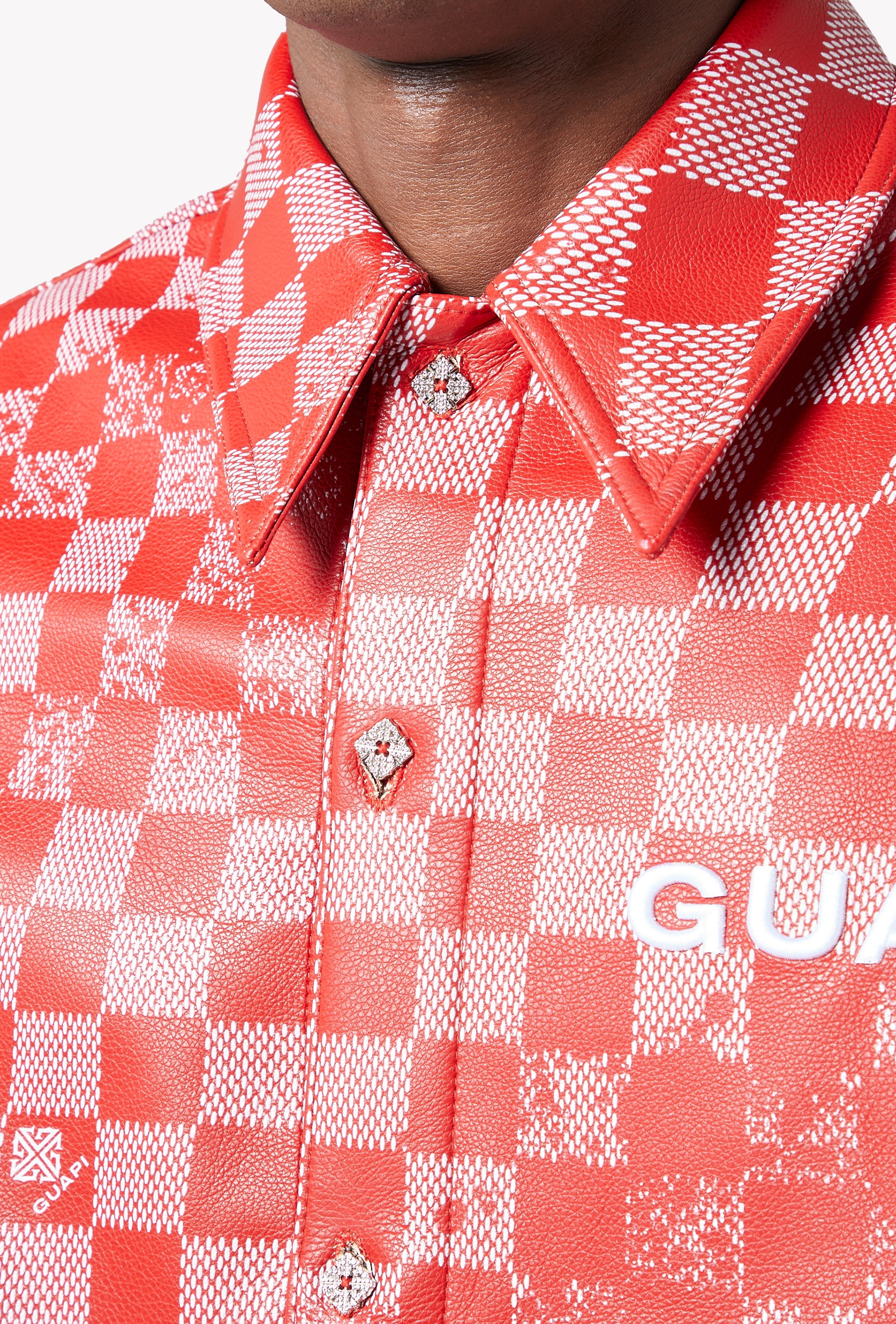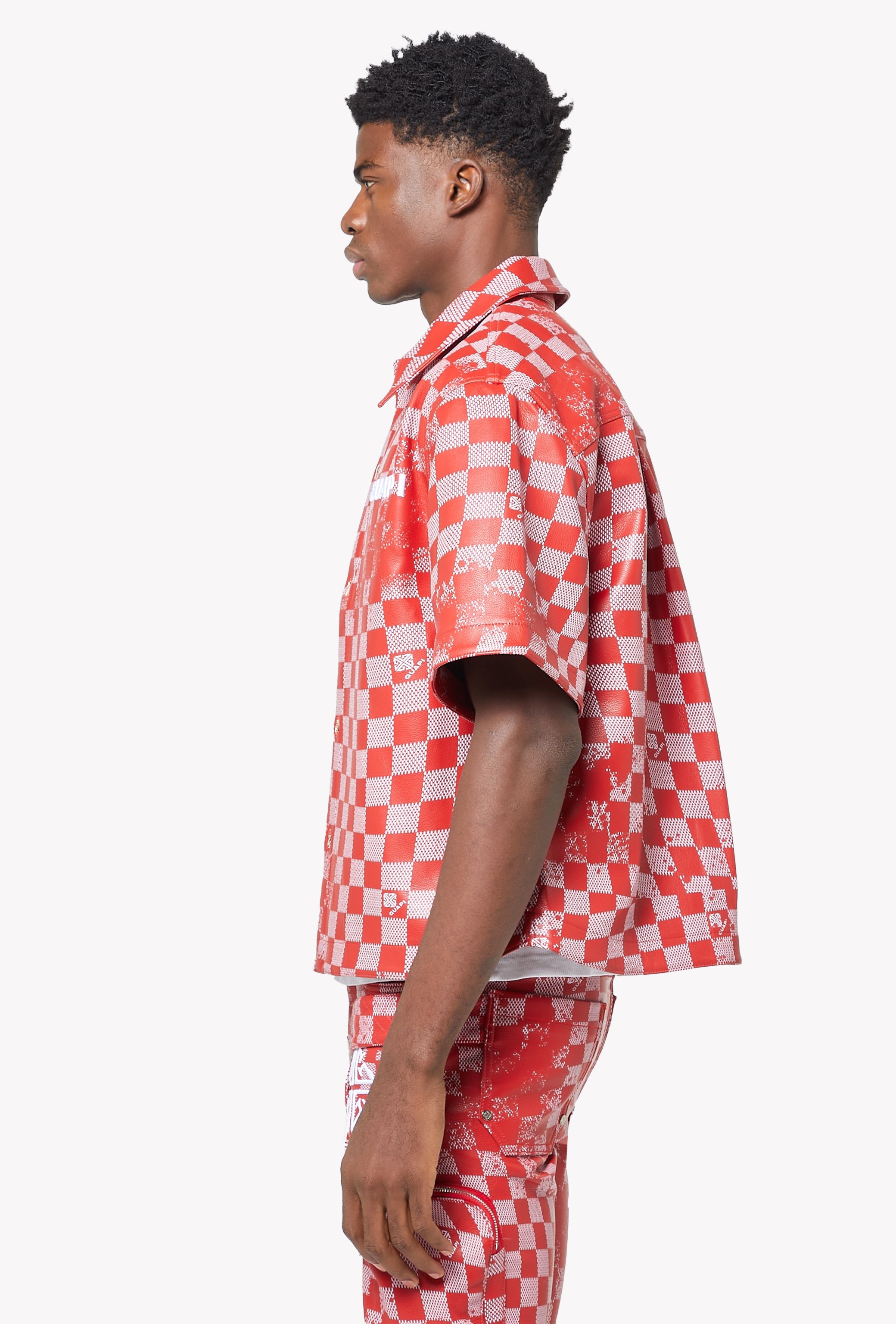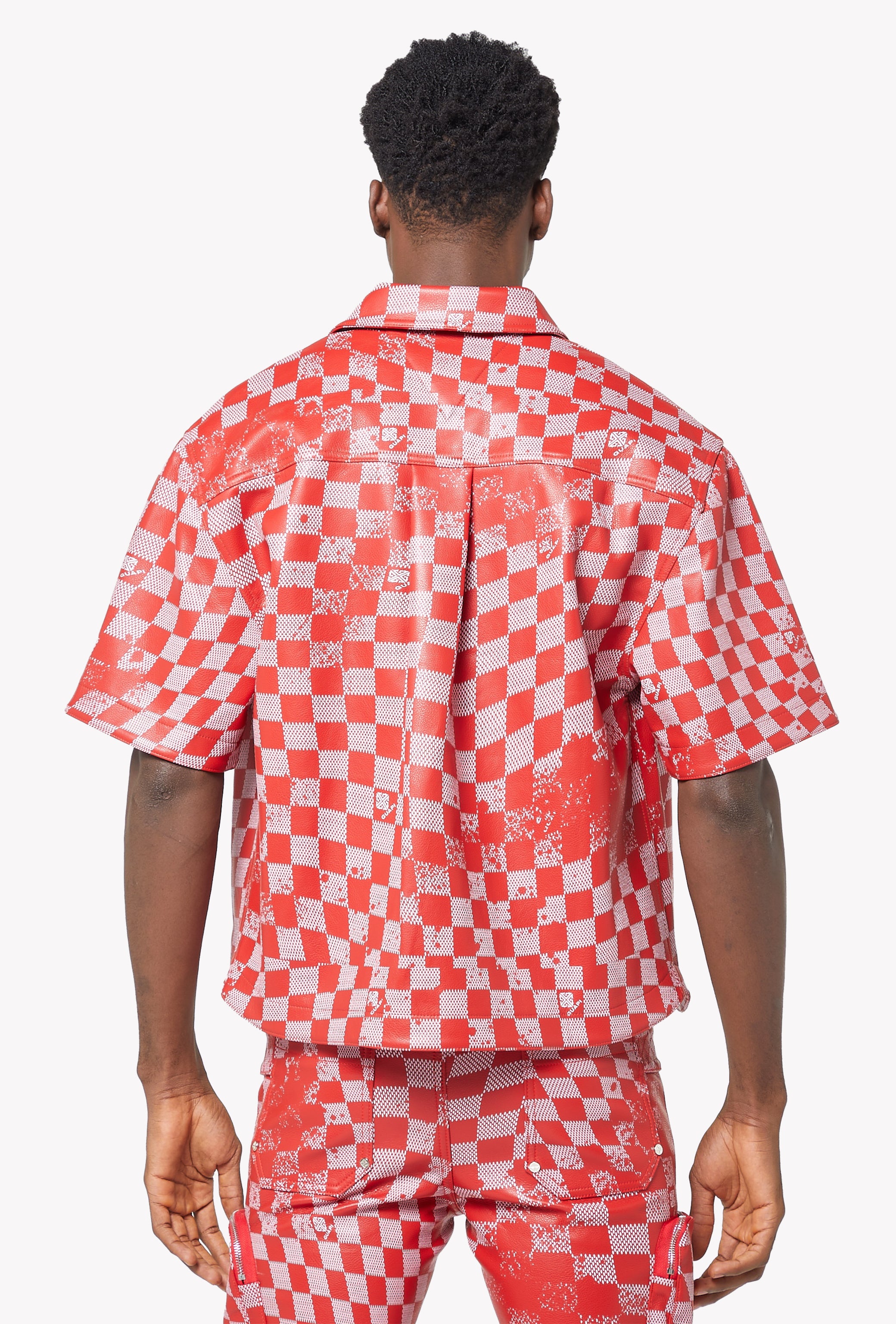 Blood Red Checkerboard Leather Shirt