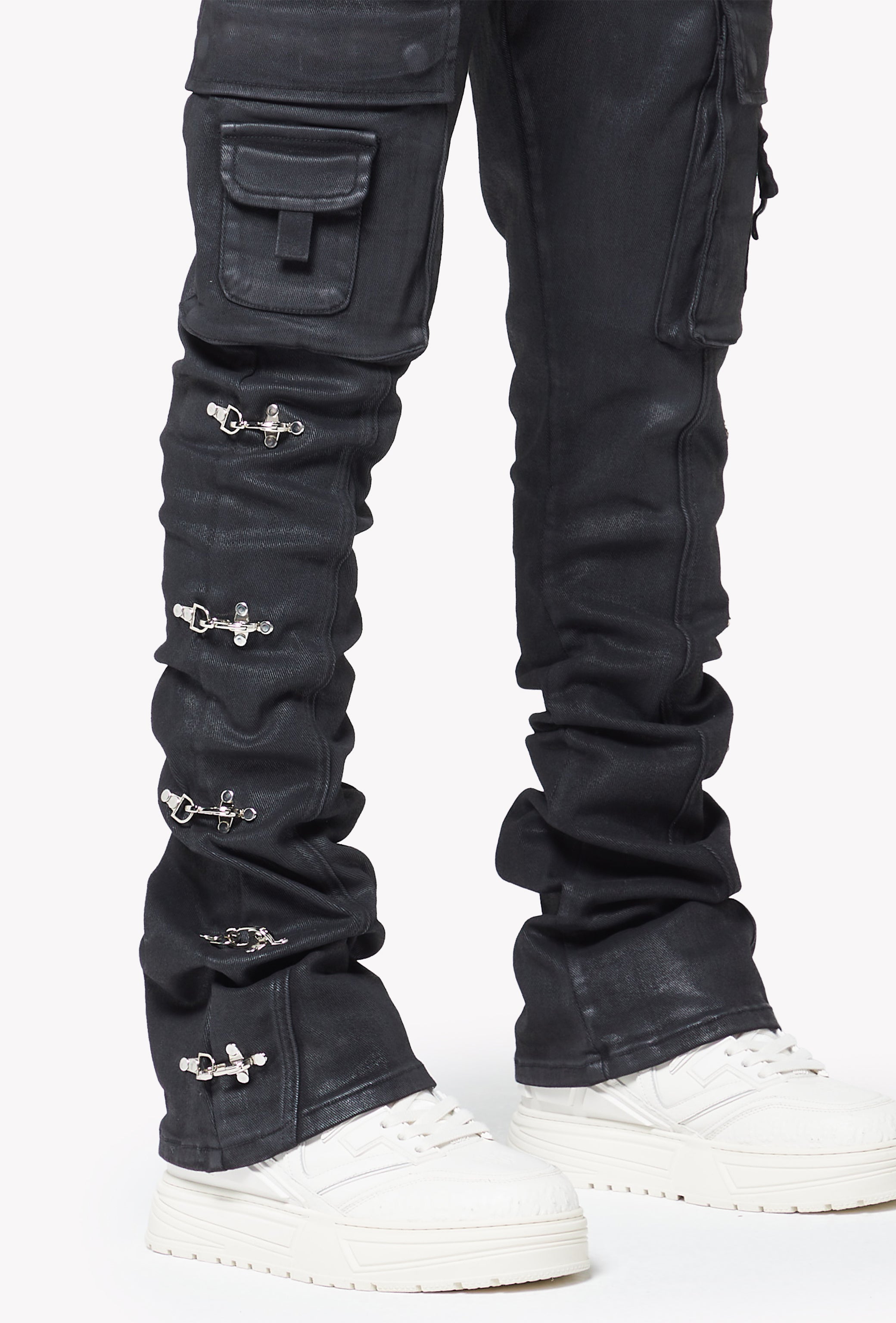 Obsidian Black Waxed Cargo Denim