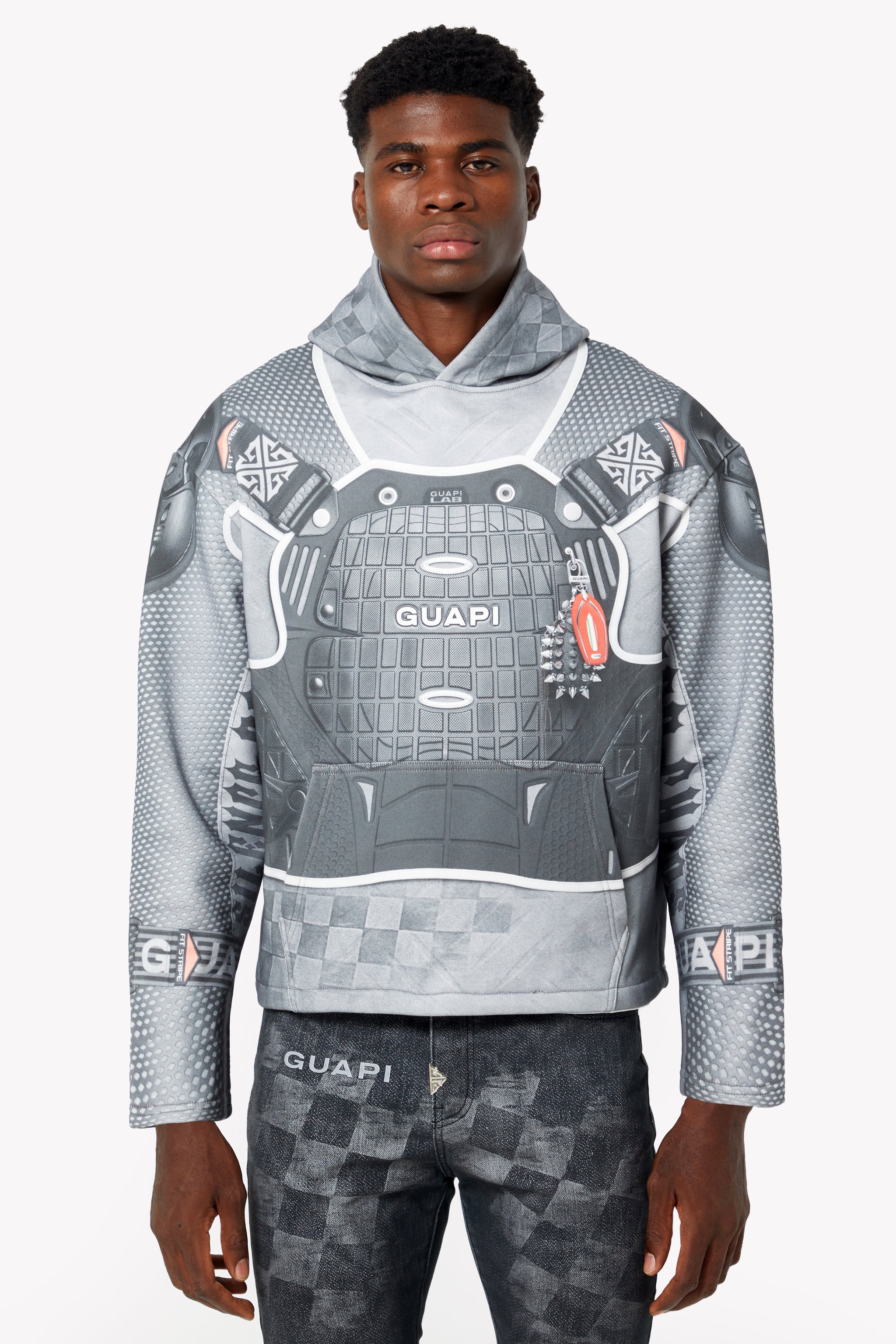 Blend utility and style with the Camo Tactical Stacked Denim, designed for those who value functionality with a bold streetwear edge. This standout piece features an intricate camo pattern complemented by tactical-inspired details such as multiple cargo pockets and metal D-ring accents. GUAPI’s signature stacked silhouette elevates the look, creating a sleek, elongated profile. Built from durable, premium fabric, this denim offers both rugged performance and urban sophistication, making it a must-have for any modern wardrobe.